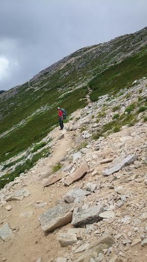 樹林帯では、強く雨が降って来ましたが、急な登りを頑張って歩くと森林限界に達しました。