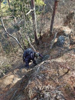 ベッタリと、岩や斜面にしがみ付くような体制は、足元が見えないので危険です。