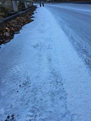 真っ白な車道は、凍っていた水分が少し溶けてシャリシャリになっていました。