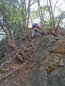 下の写真は、私の大好物の岩や根っこの登りです。ルンルン