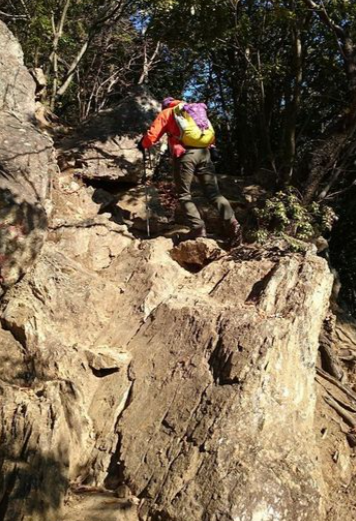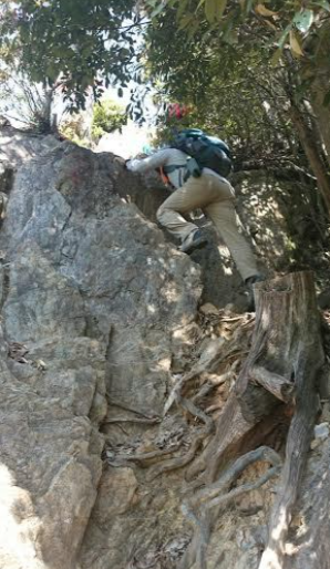 どんなに小さな岩場であっても、しっかり3点支持(3点確保)を守って、1歩1歩慎重に登りましょう。