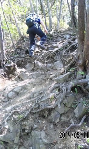 ここを登ってしまえば、尾根に上がって平坦な道が続きます。