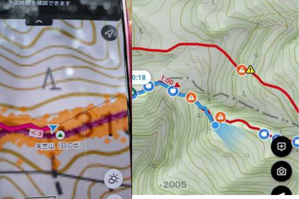 下の画像は、左がヤマレコで右がYAMAPです。