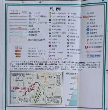 登山道とそのコースタイムや、山小屋・テント場・水場などなどです。