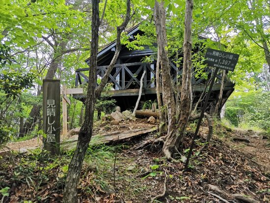 見晴らし小屋は大きいのですが、座れる場所は少なくて(私が行った時は)端っこの枠木に座った記憶があります。^^
